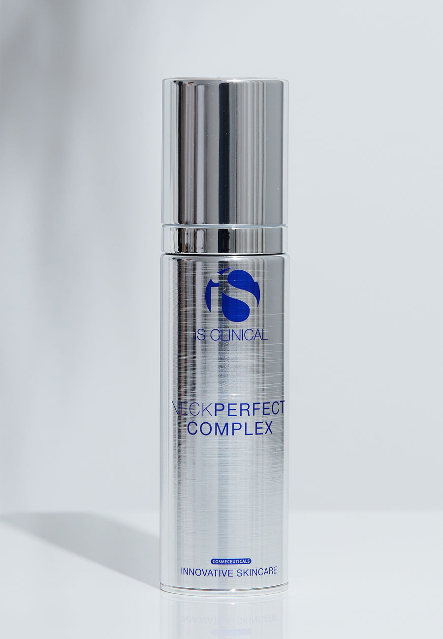 Tightening, sculpting, smoothing, the iS Clinical NeckPerfect Complex is powered by targeted botanicals and extremely powerful antioxidants, NeckPerfect Complex transforms your neck, jawline, and décolleté to appear more lifted, tightened, and defined. This revolutionary age-defying formula gently exfoliates the skin to diminish the appearance of fine lines and wrinkles, while dramatically improving the look of skin tone and texture. With continued use, the neck and décolleté appear smoother, contoured, and sculpted for a more radiant, youthful-looking complexion.